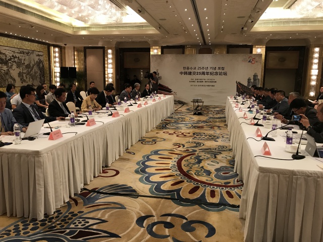 此次論壇是中韓建交25周年的系列活動之一,主辦雙方旨在通過智庫交流進一步推進中韓公共外交,為兩國關(guān)系的恢復和平穩(wěn)健康發(fā)展貢獻積極力量。致辭嘉賓還包括韓國前駐華大使、未來研究院院長辛正承,盤古智庫理事長易鵬,盤古智庫學術(shù)委員會名譽主任、中共中央對外聯(lián)絡部原副部長于洪君,韓國外交部公共外交大使樸銀夏等。韓中未來研究院執(zhí)行委員、前外交官丁相基,盤古智庫專家張璉瑰、朱鋒、高揚、王棟、岳立、安剛、梁亞濱等參加了主題發(fā)言和討論環(huán)節(jié),針對過去25年間中韓關(guān)系發(fā)展歷程、目前中韓關(guān)系的癥結(jié)以及未來中韓關(guān)系發(fā)展方向等問題給出了意見與建議。