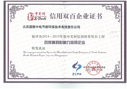 當(dāng)前位置: 國能中電公司動(dòng)態(tài)> 我公司被評為2014-2015年度中關(guān)村信用培育雙百工程“百家最具影響力信用企業(yè)”