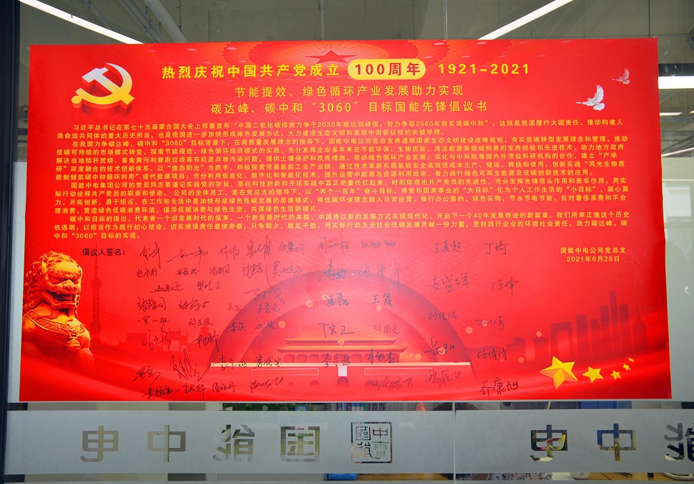 這是國能中電全體黨員及廣大員工對“3060” “碳中和”國家戰(zhàn)略的最佳解讀,是傳承紅色基因的莊嚴(yán)承諾,是踐行綠色使命的科學(xué)行動。在公司未來的發(fā)展進(jìn)程中,我們將把黨性融入骨血,用先進(jìn)的環(huán)保設(shè)備控碳減碳,用高科技的環(huán)保技術(shù)守護(hù)綠水青山。