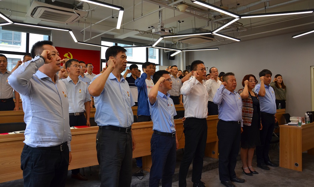 在宣誓環(huán)節(jié),全體黨員高舉右拳面向黨旗,表情肅穆,眼神堅毅,慷慨而深情地誦讀入黨誓詞,字字鏗鏘,句句堅定。
